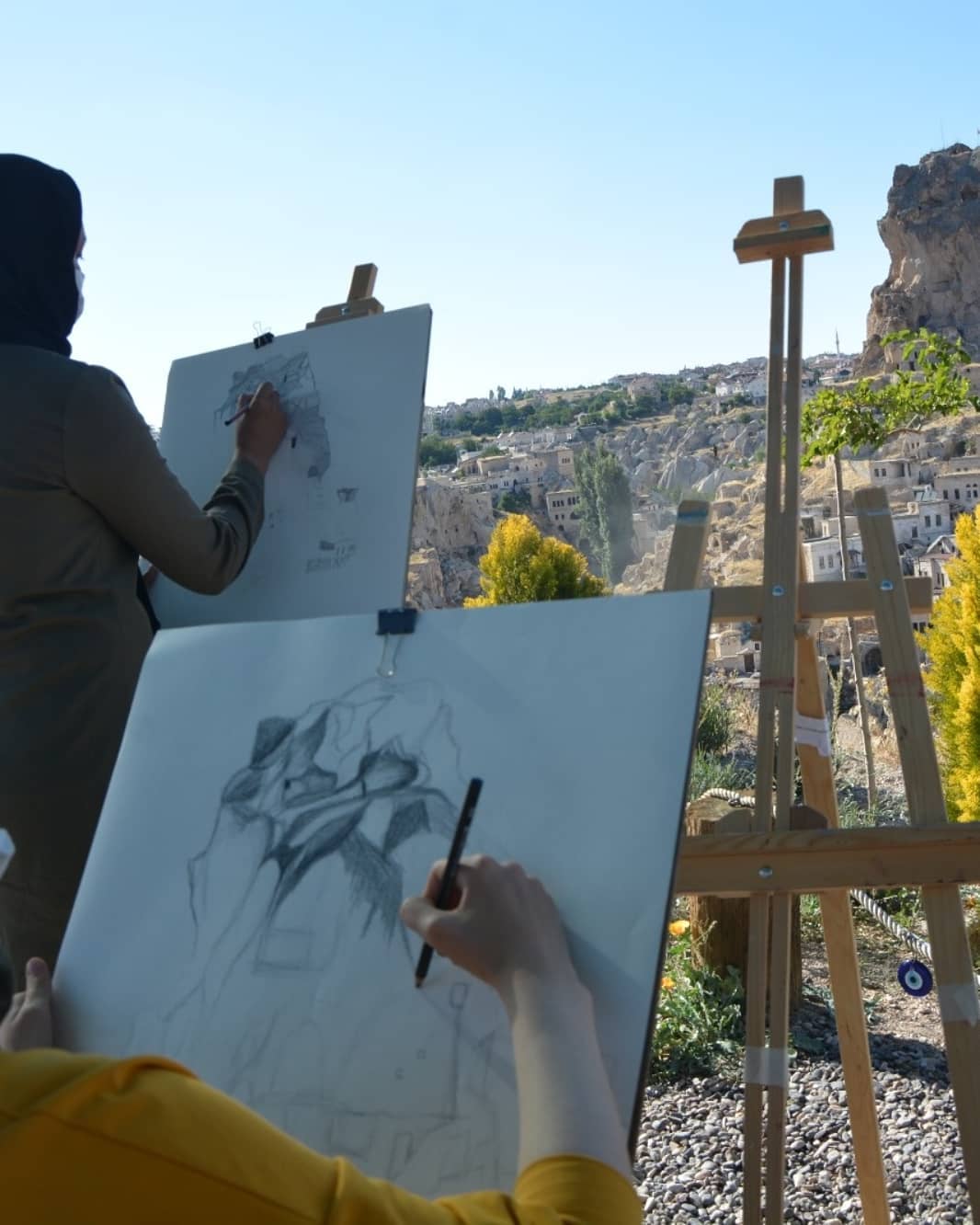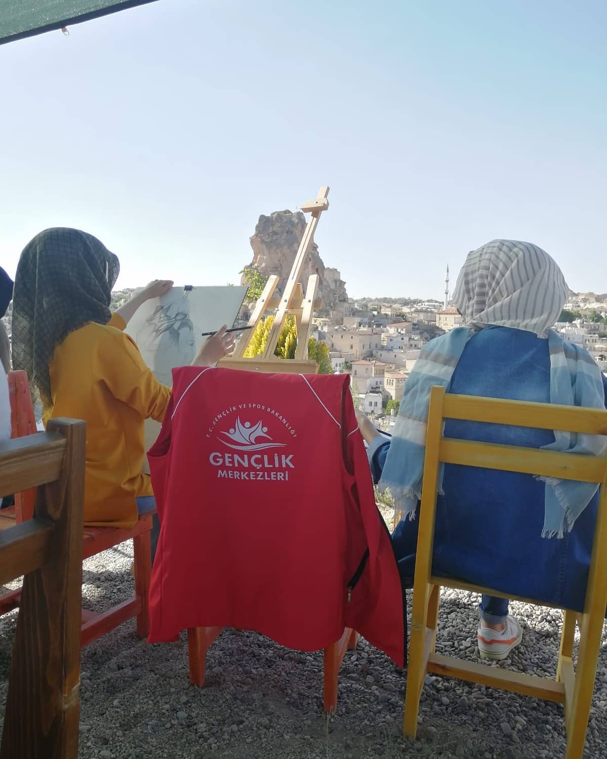 NEVŞEHİR(TRENDHABER)- Nevşehir Gençlik ve Spor İl Müdürlüğü bünyesinde gençlere yönelik hizmetler yürüten Gençlik Merkezi’nde resim egitimi alan geleceğin ressamları, bölgenin büyülü doğal ve kültürel değerlerinden Ortahisar Kalesi’ni tuallerine resmettiler.