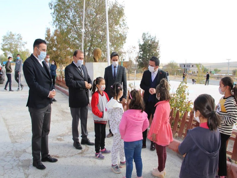 İlçe Milli Eğitim Müdür Vekili Mustafa Çiftçi’nin de hazır bulunduğu ziyaretlerde covid-19 tedbirlerini de denetleyen ilçe kaymakamı Ahmet Kavanoz, okul idarecileri ve öğretmenlerin yanı sıra, sınıflaral girerek öğrencilerle de sohbet ederek, onların istek ve dileklerini de dinledi.
