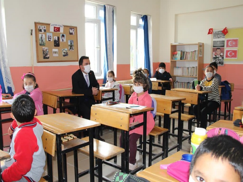 İlçe Milli Eğitim Müdür Vekili Mustafa Çiftçi’nin de hazır bulunduğu ziyaretlerde covid-19 tedbirlerini de denetleyen ilçe kaymakamı Ahmet Kavanoz, okul idarecileri ve öğretmenlerin yanı sıra, sınıflaral girerek öğrencilerle de sohbet ederek, onların istek ve dileklerini de dinledi.