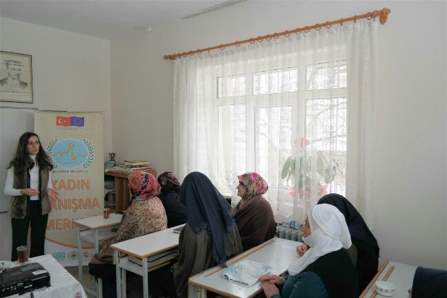 Nevşehir Belediyesi Kadın Danışma Merkezi, kuruluş hedefine uygun konumda kadınlara yönelik psikolojik destek, hukuksal destek ve sosyal danışmanlık desteğinin yanı sıra çeşitli kurum ve kuruluşlara ve kadın gruplarına eğitimler vermeye devam ediyor. Hizmet yelpazesini daha geniş tutarak, farkındalık oluşturmayı amaçlayan merkez, Nevşehir İl Müftülüğü ile işbirliği çerçevesinde, merkez Kuran Kurslarına seminerler vermeye devam etmektedir.