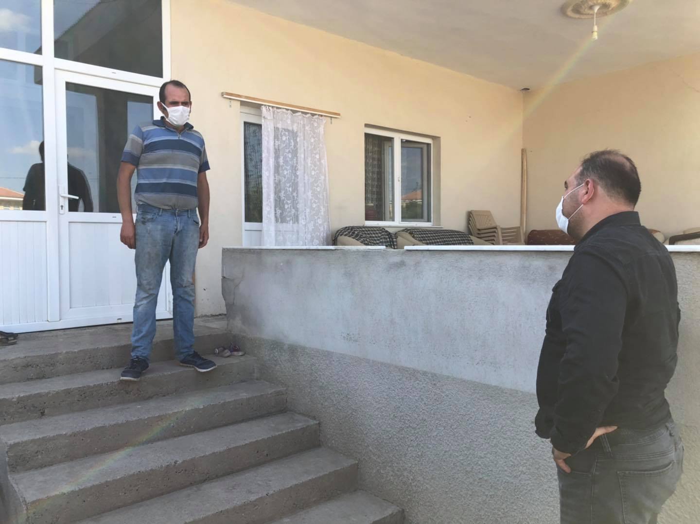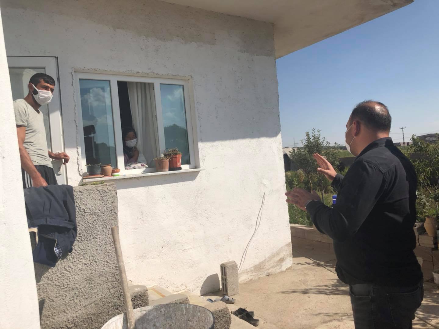 Belediye Başkanı Harun Çekiç, beldede karantina altında bulunan bazı vatandaşları evlerinin önüne ziyaret etti.