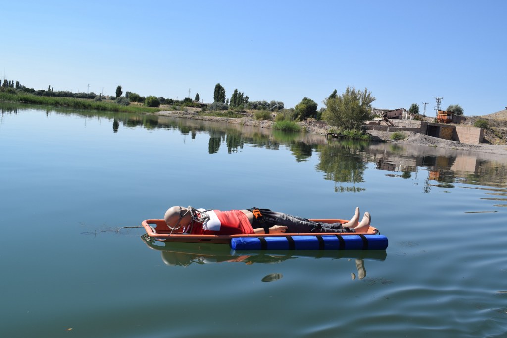 Nevşehir yerel saha tatbikatı senaryosu gereği boğulma tehlikesi yaşayan vatandaşın yanı ısra adacıkta mahsur kalan vatandaş Zodyak bot yardımıyla kurtarıldı.
