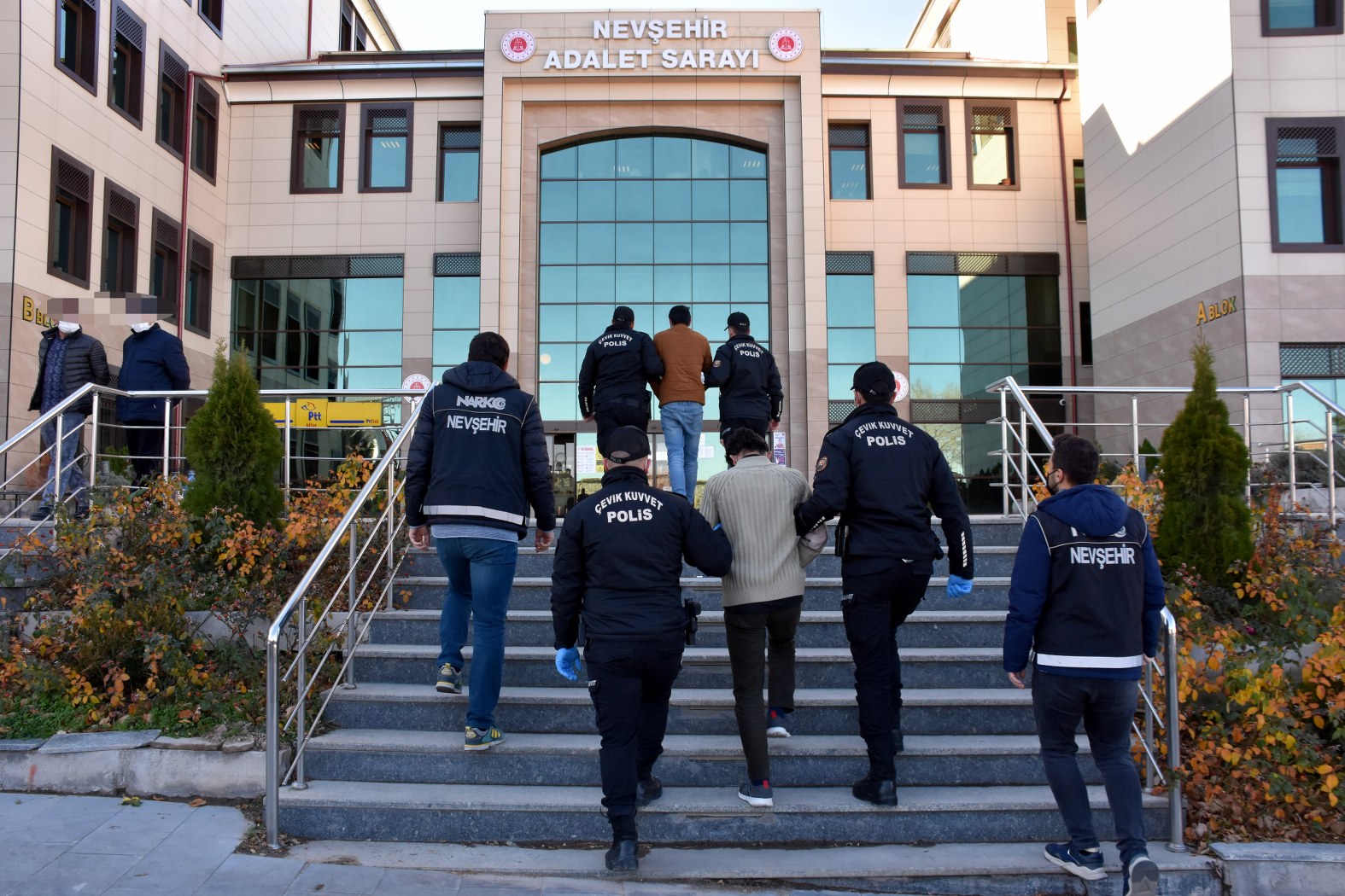 Yakalanan şüphelilerin Nevşehir Emniyet Müdürlüğü Narkotik Suçlarla Mücadele Şube Müdürlüğü’ndeki işlemlerinin ardından yakalanan ve haklarında Uyuşturucu Madde Kullanmak ve Bulundurmak suçundan işlem yapılan 5 şahıs , Emniyet Müdürlüğü’nden serbest bırakılırken, Uyuşturucu Madde Ticareti Yapma veya Sağlama suçundan Nevşehir Adliye Sarayı’nda mahkemeye çıkartılan 7 kişi, tutuklanarak Nevşehir E Tipi Kapalı Ceza İnfaz Kurumuna gönderildi.