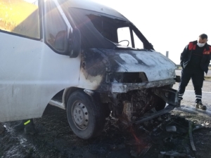 Sürücüsünün ismi öğrenilemeyen 68 ET XXX plakalı minibüs seyir halindeyken alev aldı. Yolcu koltuğunda bulunan sürücü ve oğlu olduğu iddia edilen bir kişi yanan araçtan inerek itfaiye ekiplerine haber verildi.