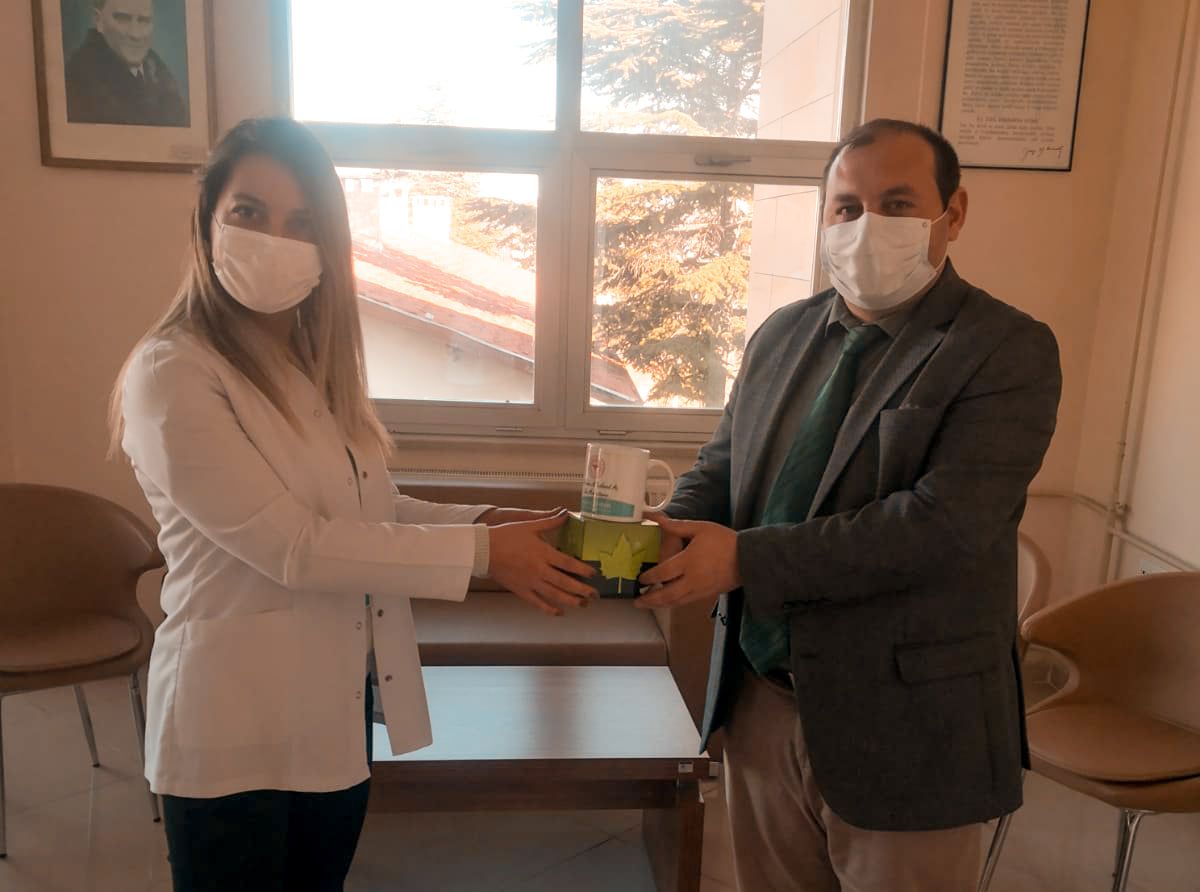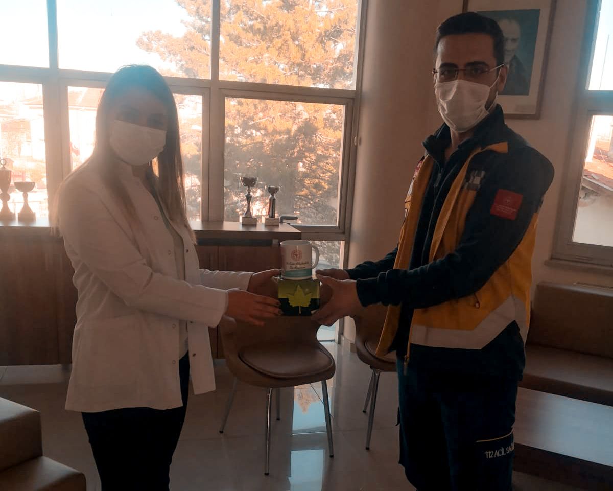 ücadele eden Derinkuyu Devlet Hastanesi’nde görev yapan sağlık çalışanları için üzerinde ‘Ne kadar alkışlasak az, Size minnettarız’ yazan kupa bardak yaptırtarak sağlık çalışanlarına dağıttı.