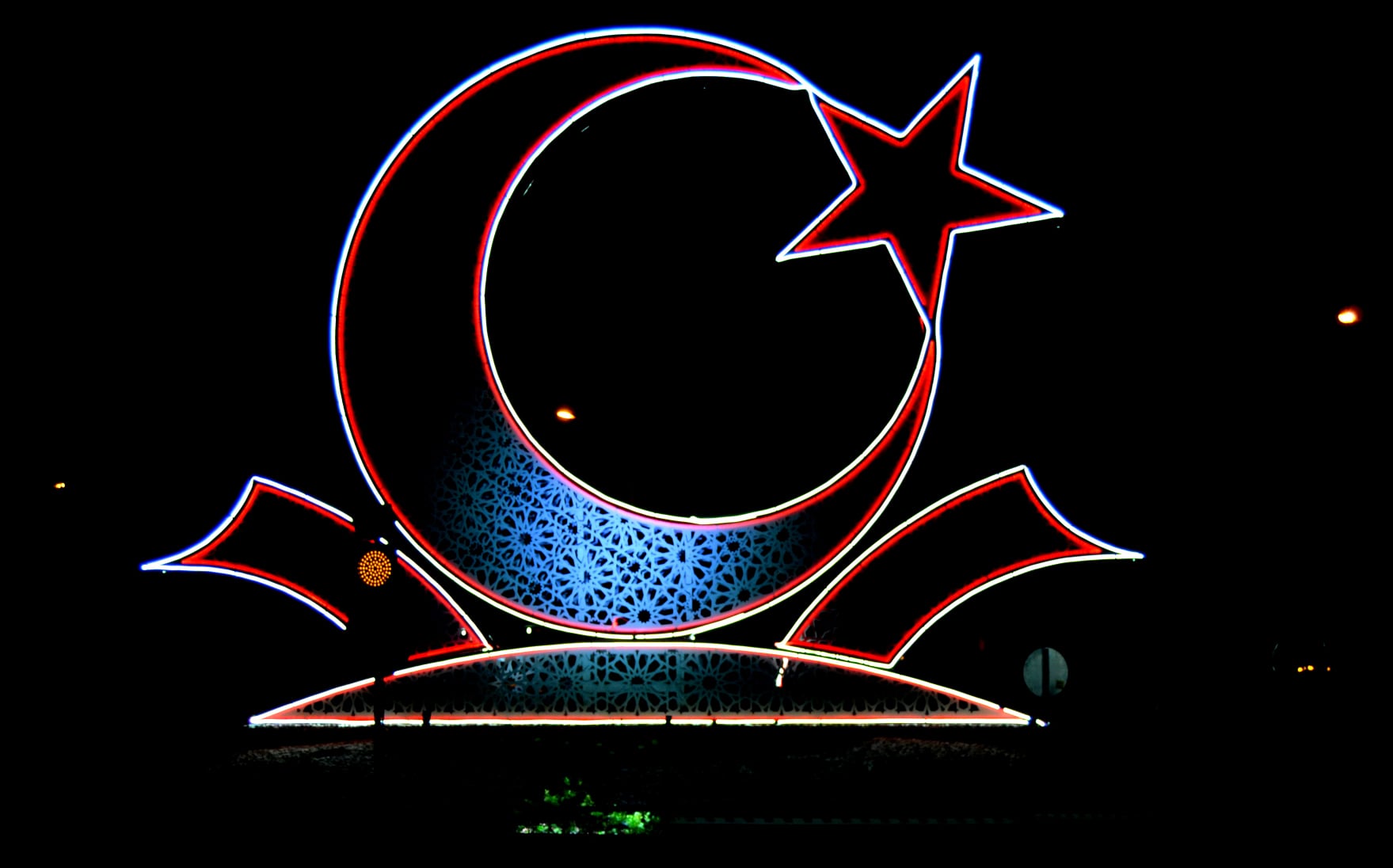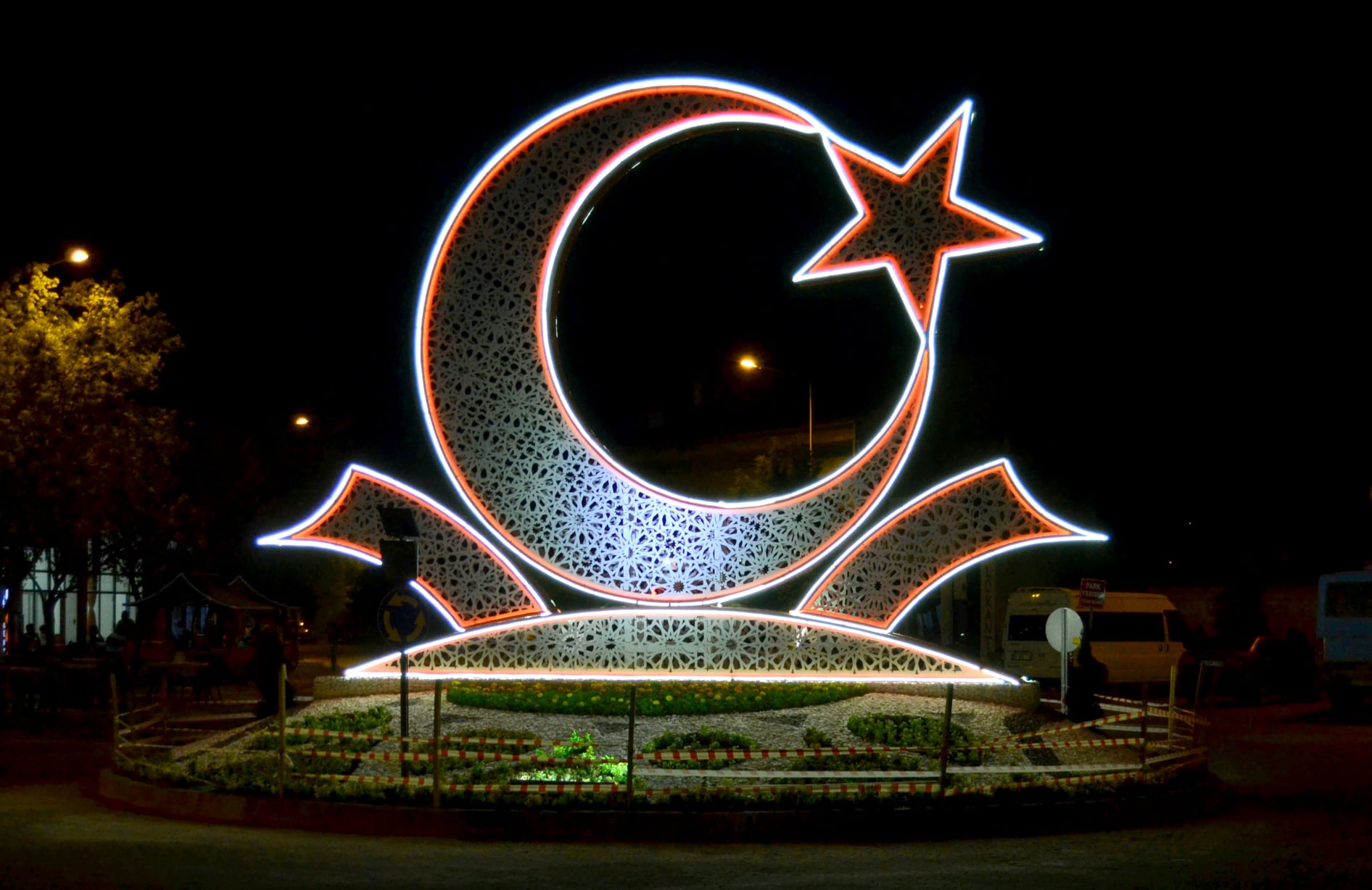 Meydanın orta yerinde oluşturulan Ay-Yıldız figürlü tasarım gören herkesin büyük beğenisini topluyor,Geceleri led ışıklandırma sistemi ile de aydınlatılan Cumhuriyet Meydanı’ndaki Ay Yıldız,oldukça farklı güzelliği de ortaya koydu.