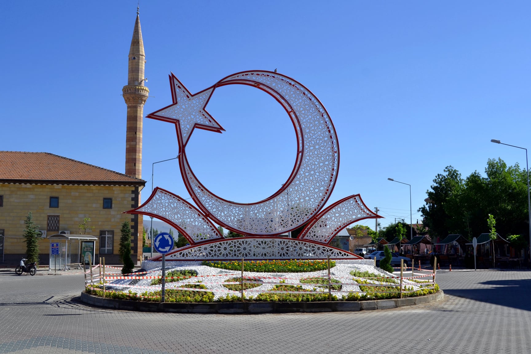 NEVŞEHİR(TRENDHABER)- Nevşehir’in Derinkuyu ilçesine bağlı Yazıhüyük beldesindeki Cumhuriyet Meydanı,Ay Yıldızlı görünümü ile nefes kesen bir görünüme kavuştu.