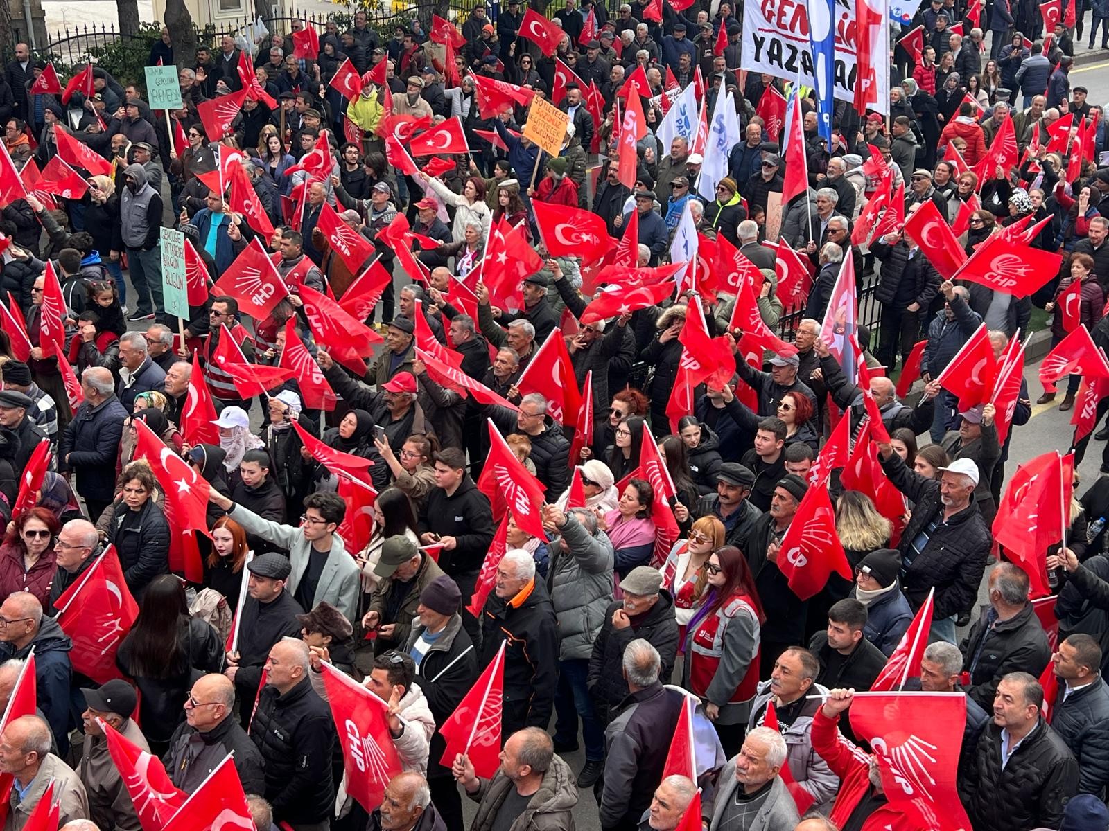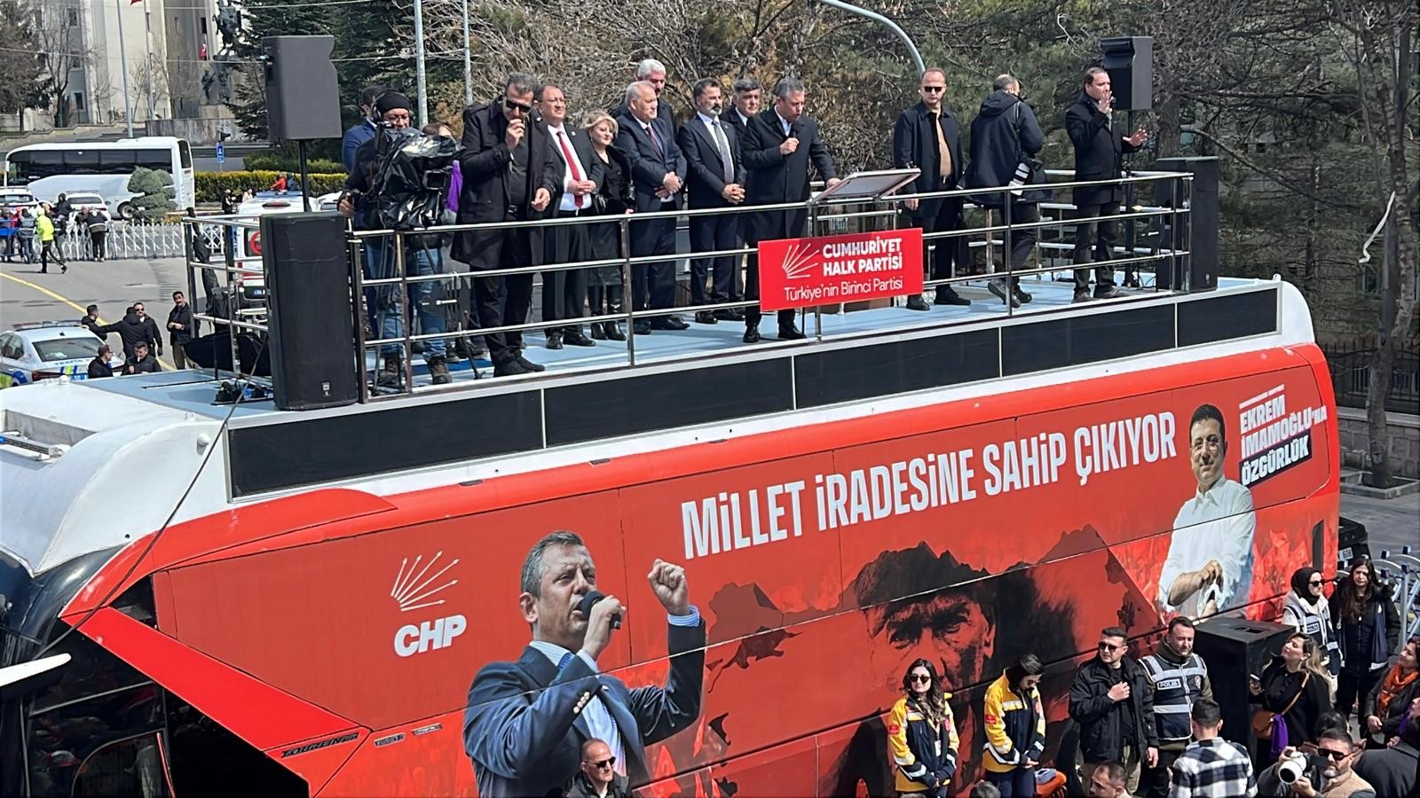 “Ekrem Başkanı içerde tutmanın, CHP’li belediyelere saldırmanın ve yapılacak bir seçimde bizden korkmanın maliyetini vatandaşa ödetiyorsunuz” diyen Özgür Özel, “Tutuksuz yargılamaya geçin, Ekrem Başkanı ve arkadaşlarını serbest bırakın. Türkiye’yi de bu kötü yönetiminin sonucu borçtan, kötü yönetiminin sonucu yoksulluktan, kötü yönetimin sonucu işsizlikten kurtarın. Ya bunu yapacaksınız ya da bu millet ilk sandıkta sizi perişan edecek. Sizi sandığa gömecek. Gelin canlı yayında yayınlamayı kabul edin. O gün savcı öyle şeyler söylüyordu ki; dünya kadar iftiraları ediyordu. Devlet Bey ‘Madem istiyorlar canlı yayın olsun, millet ne var ne yok görsün’ dedi. 10 ay bekledik. İddianame çıktı. Üstünde tepindikleri lafların hepsi yalan çıktı. Hiçbiri iddianamede yer almadı. 560 milyon yolsuzluk dediler. 560 kuruş bile yok” dedi.