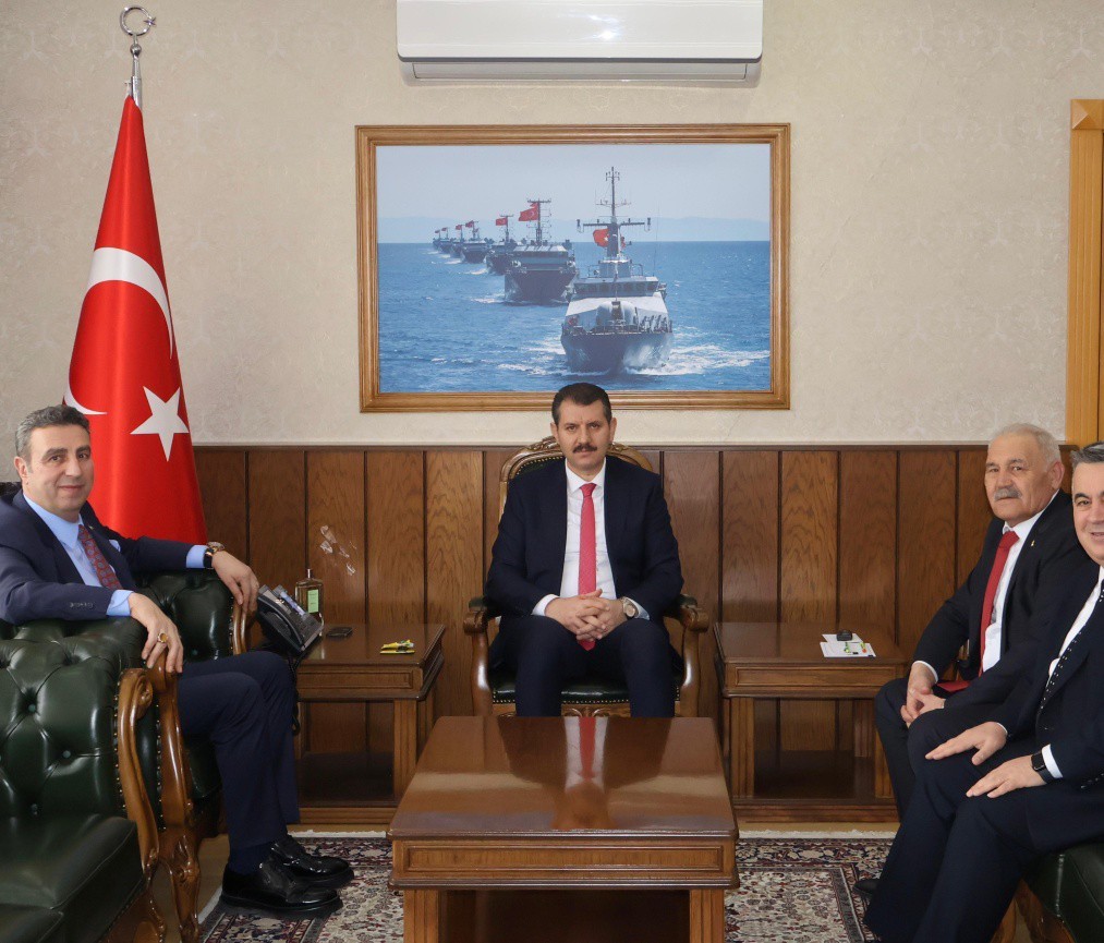 NEVŞEHİR(TRENDHABER) - Nevşehir Esnaf ve Sanatkarlar Odaları Birliği Başkanı Mehmet Pınarbaşı, Sivas Esnaf ve Sanatkarlar Odaları Birliği Başkanı Hakan Demirgil ve Bartın Esnaf ve Sanatkarlar Odaları Birliği Başkanı Yılmaz Akdeniz ile birlikte Milli Savunma Bakan Yardımcısı Salih Ayhan'ı makamında ziyaret etti.