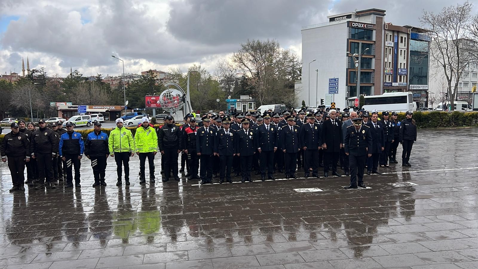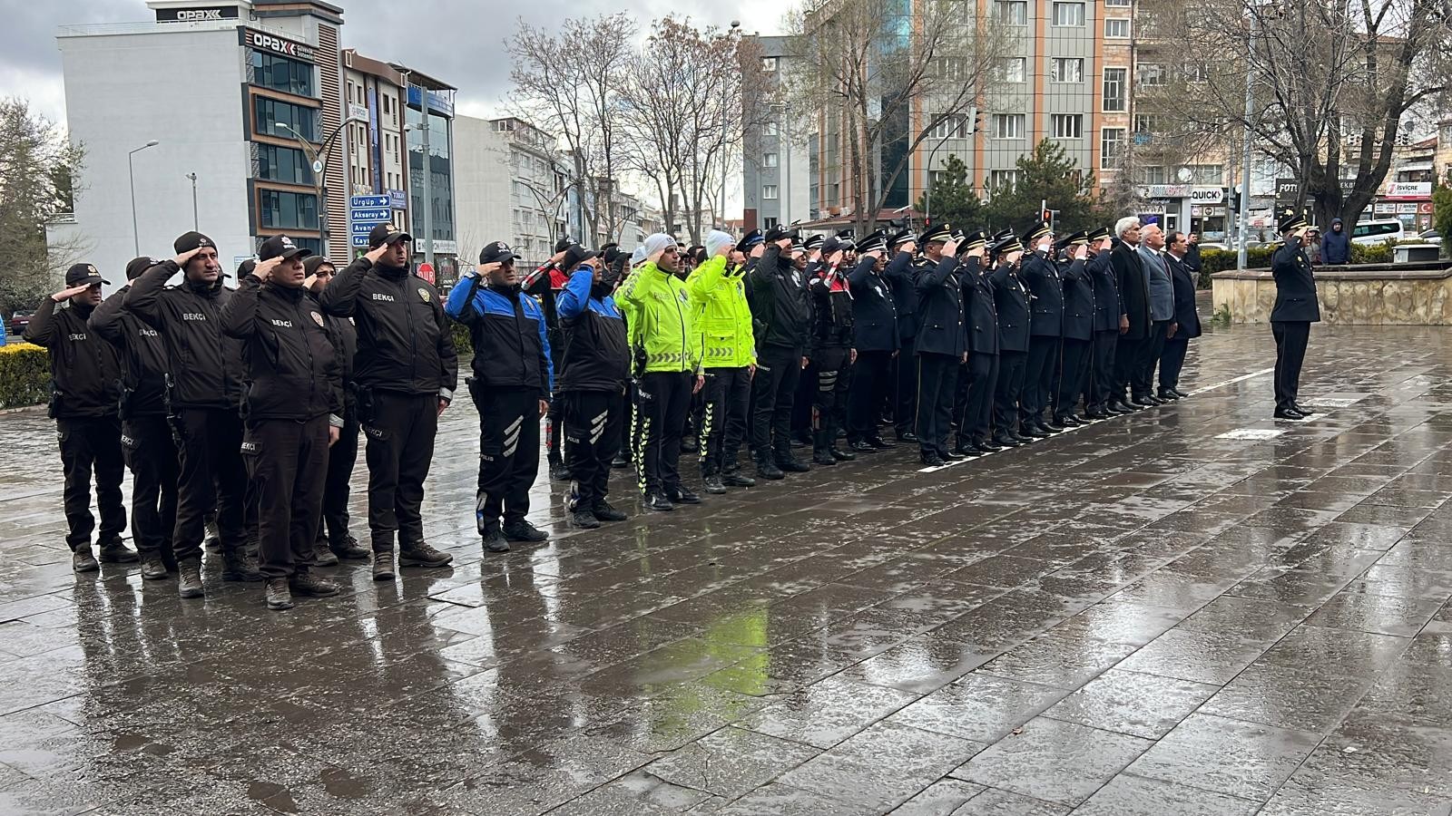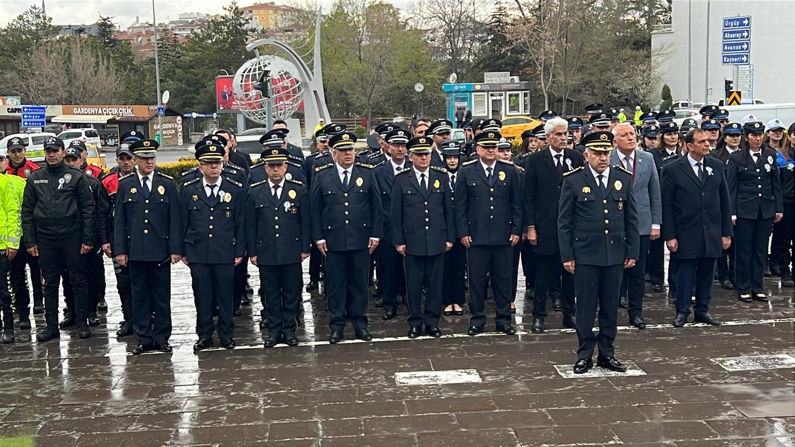 NEVŞEHİR(TRENDHABER)- Türk Polis Teşkilatının kuruluşunun 181. Yıldönümü ve Polis Haftası,Nevşehir Emniyet Müdürü Serkan Karaman ve çalışma arkadaşlarının Nevşehir Valiliği önündeki Atatürk Anıtına çelenk koyması., saygı duruşu ve İstiklal Marşının okunmasıyla başladı.