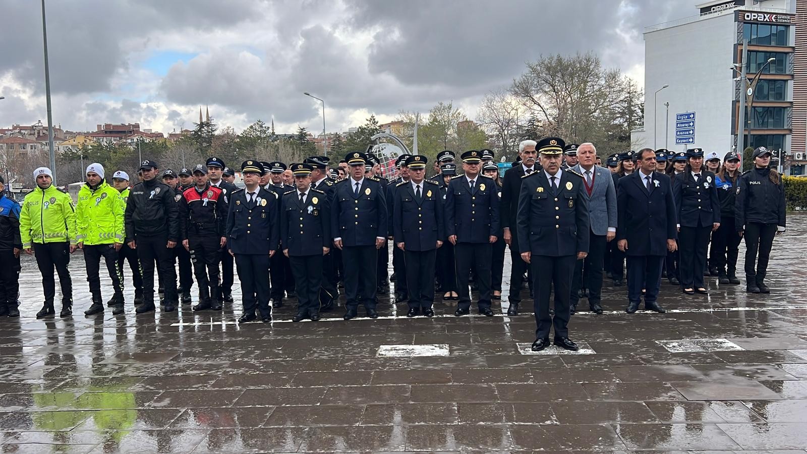 Atatürk Anıtı önündeki törene polis emeklileri de olan Çat Belediye Başkanı Zübeyir Kalay ve Göre Belediye Başkanı İsmail Güzel ile yine gazi polis emeklisi de olan Türkiye Gaziler ve Şehit Aileleri Vakfı Nevşehir Şube Başkanı ve Nevşehir Vatan Şehitleri ve Gazileri Derneği Başkanı Ramazan Çiftçi’ de eşlik etti.