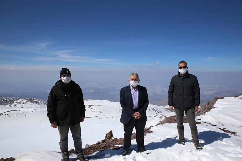 Büyükşehir Belediye Başkanı Dr. Memduh Büyükkılıç, Erciyes’te incelemelerde bulundu. 3 bin 400 metre yüksekliğindeki Ottoman bölgesinde koronavirüs sonrasına ilişkin açıklamalarda bulunan Başkan Büyükkılıç, “Bugün asıl olan sağlığımız; ancak geleceğe dair de çalışmalarımızı sürdürüyoruz” mesajını verdi.