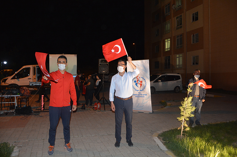Bir çok vatandaş evlerinin penceresi ve balkonundan etkinliğe katıldı.