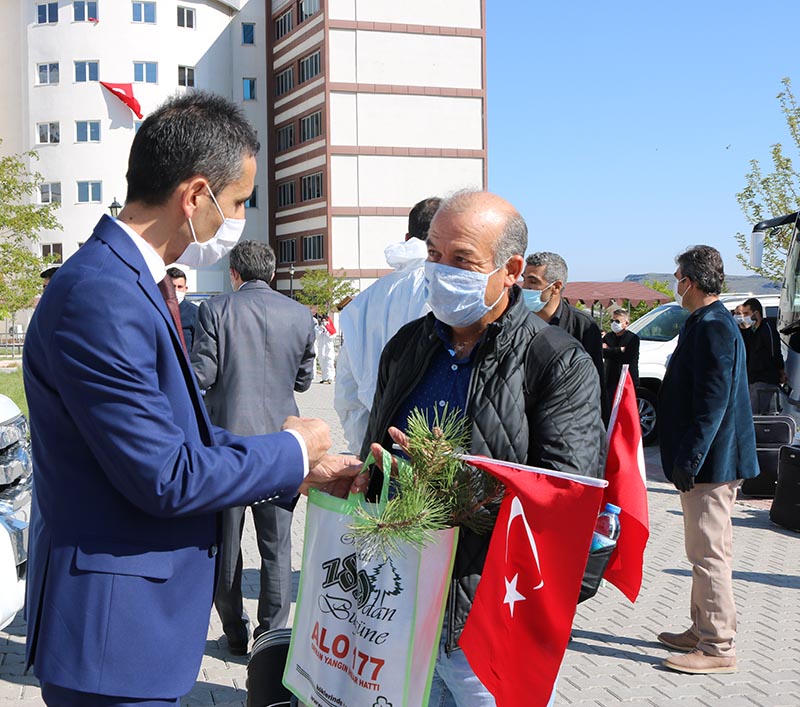 Nevşehir Gençlik ve Spor İl Müdürlüğü yurtlarda karantinaya alınan vatandaşlar için bir fidan projesini hayata geçirdiklerini dile getiren Muhsin Özdemir ; “ Yurt dışından getirilerek 14 günlük karantina süresi içerisinde her türlü ihtiyaçları karşılanan vatandaşlarımız bu gün evlerine dönüyor.Bizde her bir vatandaşımıza çam fidan hediye ettik dedi.