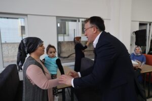 Başkan Savran iftar programının ardından, Kahramanmaraş merkezli depremlerin ardından, Nevşehir’de Kredi Yurtlar Kurumuna (KYK) bağlı Nevşehir Kız Öğrenci Yurdun da misafir edilen depremzede kadınların katıldıkları seramik boyama ve ahşap boyama kursundaki el emeği ürünlerinin
