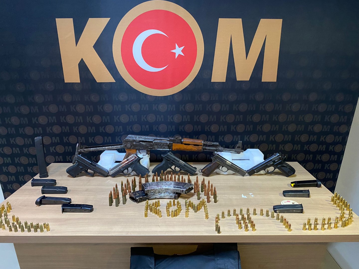 Yapılan aramada 1 adet AK-47 Kalaşnikof, 2 adet AK-47 şarjör, 56 adet AK-47 mermisi, 5 adet tabanca, 8 adet tabanca şarjörü, 204 adet tabanca fişeği, 1 adet balistik yelek ile 10 gram esrar ele geçirildi.