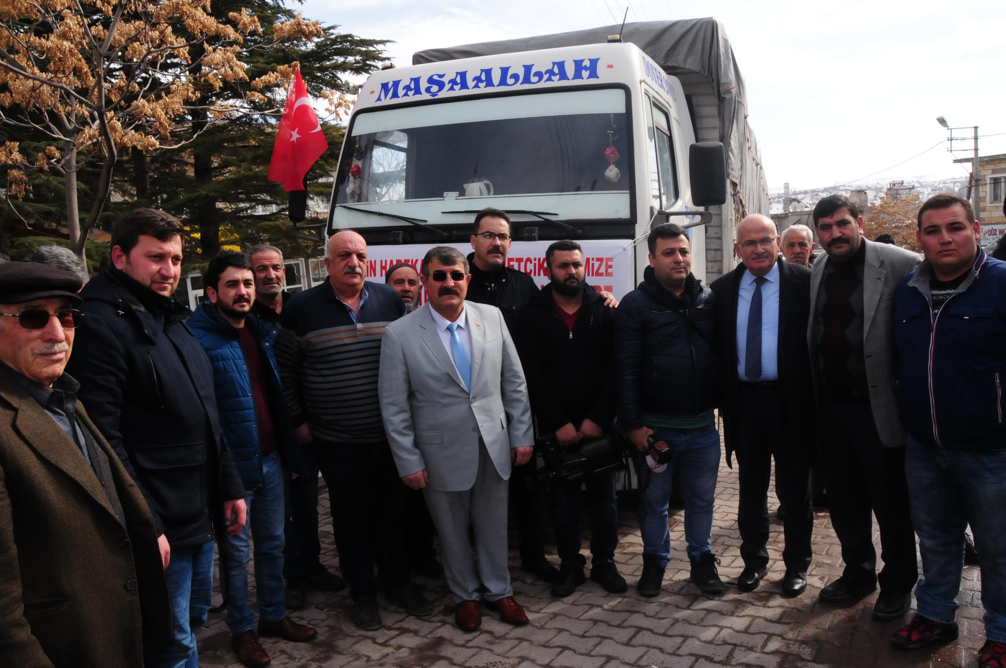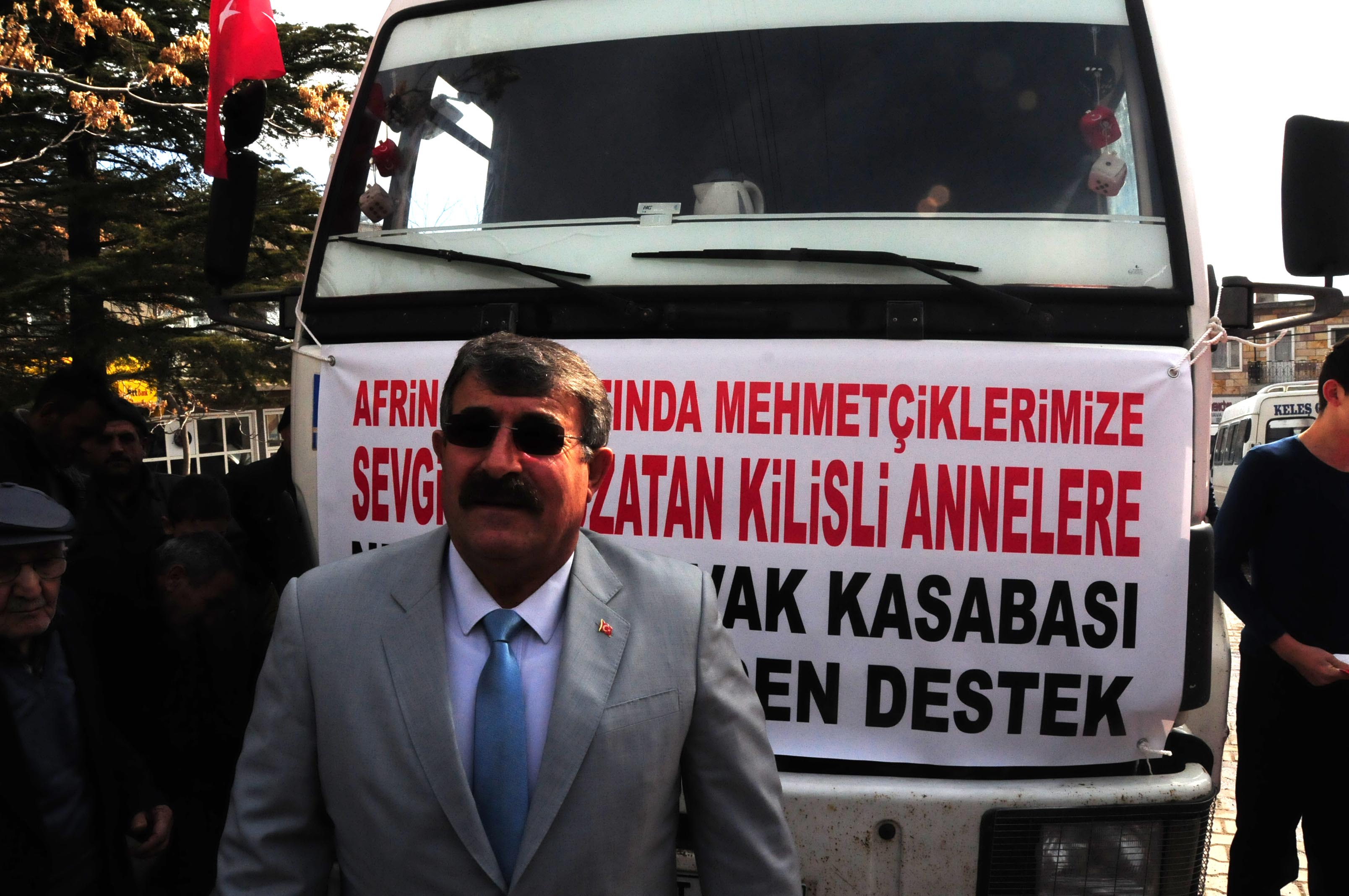 Kamyonunun önüne asılan yazıda ise Afrin harekatında Mehmetçiklerimize sevgi elini uzatan Kilisli annelere Nevşehir kavak kasabası belediyesinden deste pankartı ile yola çıktı.