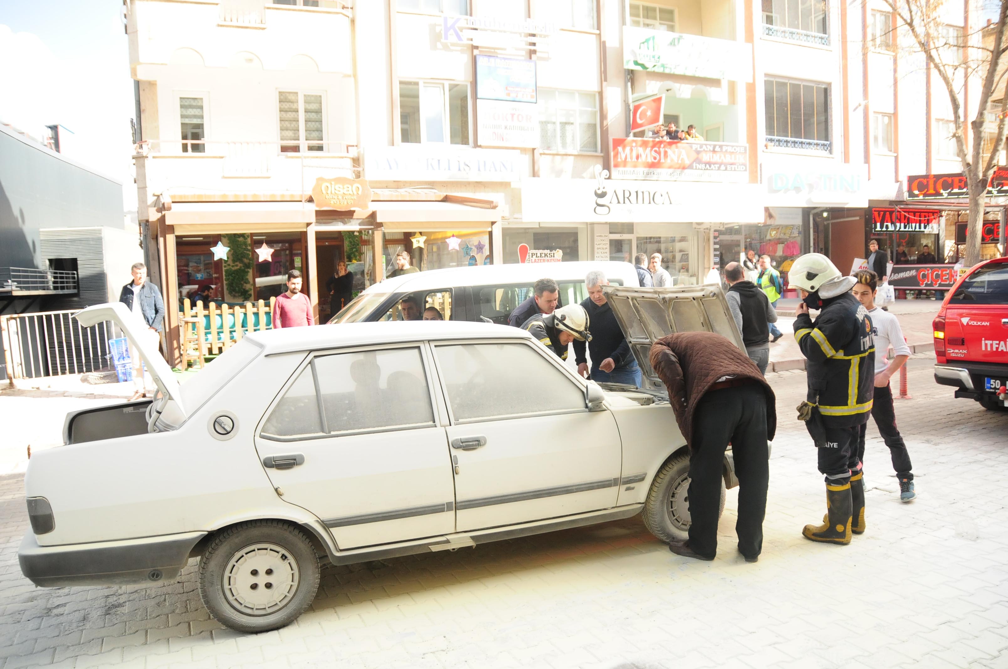 Cadde üzerinde bulunan esnaf ve İtfaiye ekipleri müdahalesiyle otomobil kısa sürede söndürüldü.