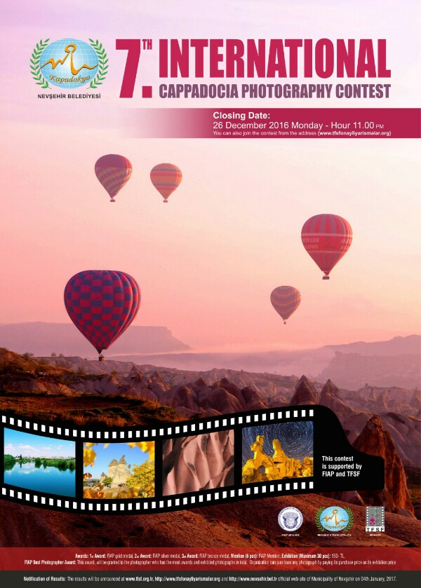 Merkezi İngiltere’de bulunan Fotoğraf Sanatı Federasyonu(FİAP)’nun yanı sıra Türkiye Fotoğraf Sanatı Federasyonu(TFSF)’nun da katkı sağladığı 7. Nevşehir Belediyesi Uluslararası Kapadokya Fotoğraf Yarışmasına amatör ve profesyonel sanatçılar katılabilecek.