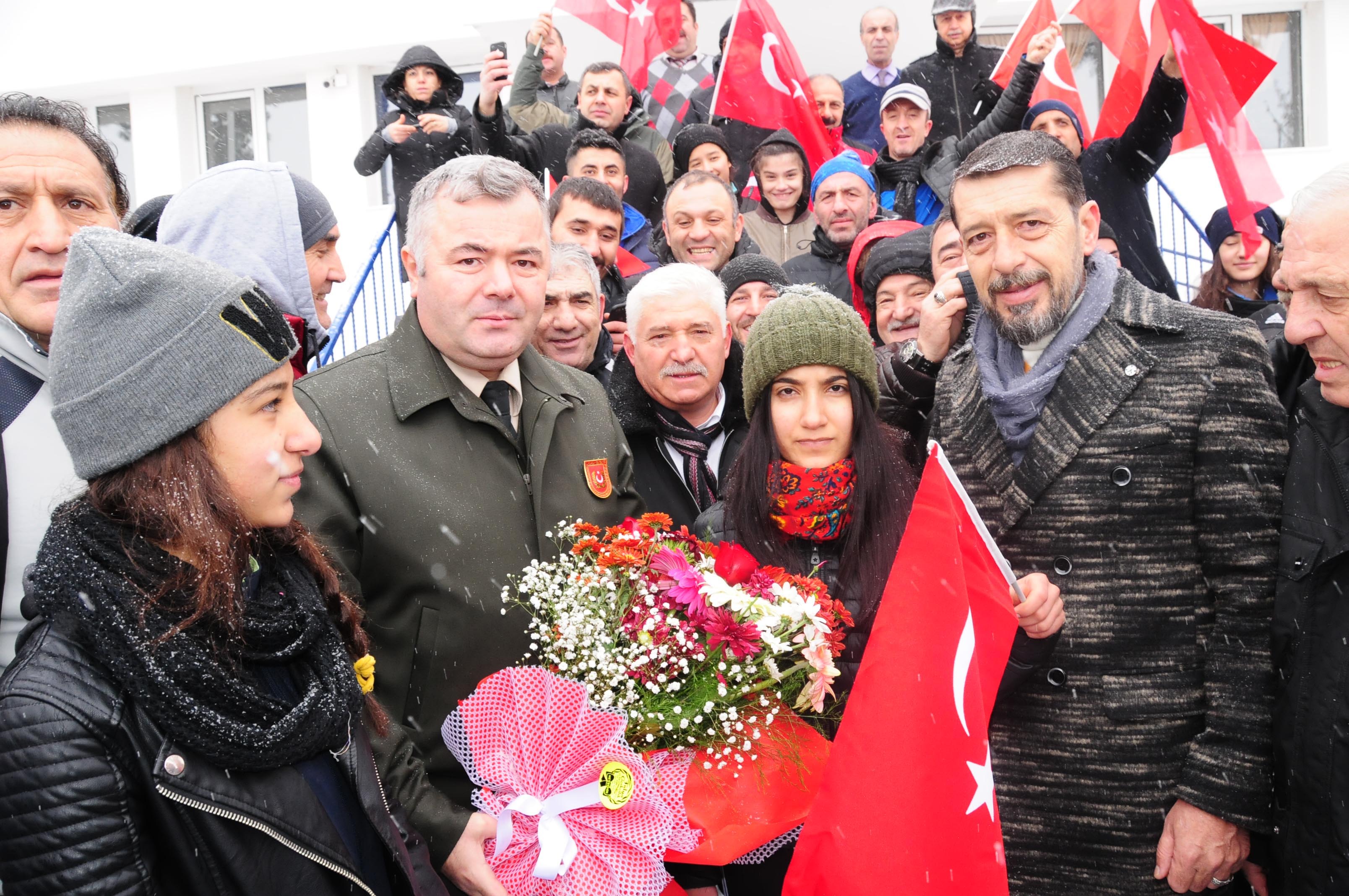 Askerlik Şubesi Başkan Vekili Astsubay Kıdemli Başçavuş Serkan Yalçın tarafından karşılanan Türkiye Boks Federasyonu Organizasyonlar Sorumlusu İsmail Nazlı ve beraberindeki antrenör, hakem ve sporcular, Yalçın’a çiçek verdi. İsmail Nazlı, güvenlik güçlerinin yoğun çabaları ve fedakar çalışmaları neticesinde hayatın normal bir şekilde akmaya devam ettiğini belirterek, “Ülkemizin dört bir yanında kendi hayatlarından fedakarlıkta bulunup, bizlerin normal yaşantısına devam etmesi için çalışan güvenlik güçlerimizin her zaman yanındayız. Bugün de burada Afrin’de ülkemizin bekası için canını vermeye hazır olan askerlerimize destek amaçlı toplandık. Bizler bugün buradayız ama hepimizin aklı, kalbi Afrin’de” dedi.