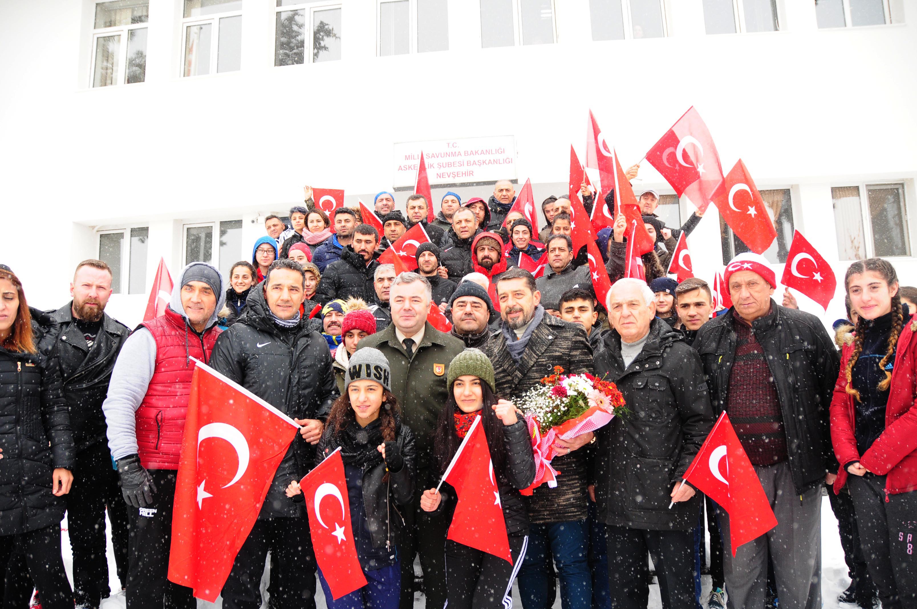 Askerlik Şubesi Başkan Vekili Astsubay Kıdemli Başçavuş Serkan Yalçın tarafından karşılanan Türkiye Boks Federasyonu Organizasyonlar Sorumlusu İsmail Nazlı ve beraberindeki antrenör, hakem ve sporcular, Yalçın’a çiçek verdi. İsmail Nazlı, güvenlik güçlerinin yoğun çabaları ve fedakar çalışmaları neticesinde hayatın normal bir şekilde akmaya devam ettiğini belirterek, “Ülkemizin dört bir yanında kendi hayatlarından fedakarlıkta bulunup, bizlerin normal yaşantısına devam etmesi için çalışan güvenlik güçlerimizin her zaman yanındayız. Bugün de burada Afrin’de ülkemizin bekası için canını vermeye hazır olan askerlerimize destek amaçlı toplandık. Bizler bugün buradayız ama hepimizin aklı, kalbi Afrin’de” dedi.