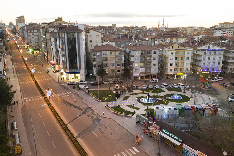 Çalışmalar kapsamında ilk olarak daha önce ana cadde bölümünde yer alan bankamatikleri yan tarafa taşıyarak bu alanda küçük bir meydan oluşturan belediye ekipleri, bu meydana süs havuzu yaptı.