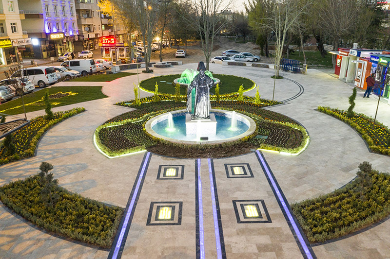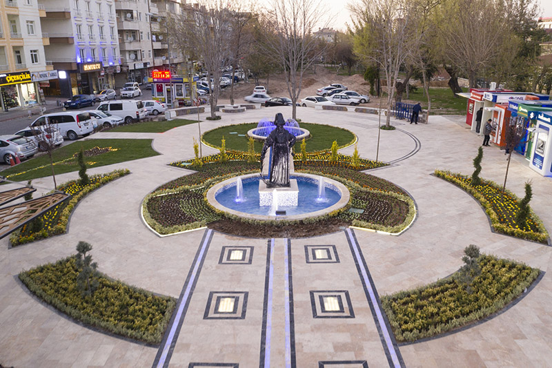 Nevşehir’in kurucusu Damat İbrahim Paşa’nın restore edilen heykelinin de yerleştirildiği meydanın etrafı oluşturulan lale figürleri içerisindeki çiçeklerle süslendi.