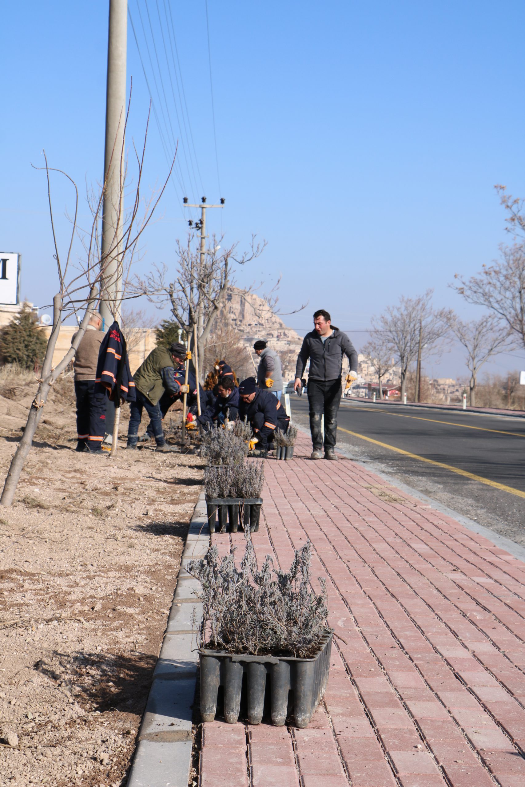 NEVŞEHİR(TRENDHABER)- Uçhisar Belediyesi ekipleri yeşil alan, refüj, kavşak ve parklarda lavanta mevsiminin gelmesiyle birlikte lavanta fidanı dikimine başladı.