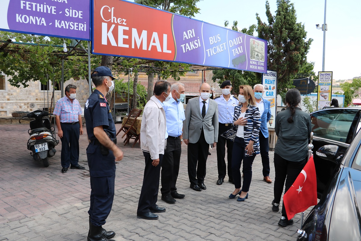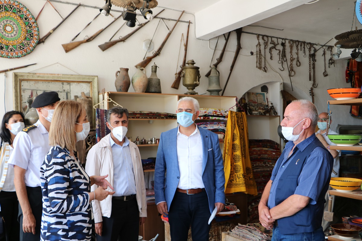 NEVŞEHİR(TRENDHABER)- Nevşehir Valisi İnci Sezer Becel , İçişleri Bakanı Süleyman Soylu tarafından 81 İle gönderilen covid-19 le etkin mücadelede denetim yapılması yönündeki genelge kapsamında, Nevşehir’in Uçhisar beldesinde esnaflara yönelik olarak  denetim yaptı ve maske hediye etti.