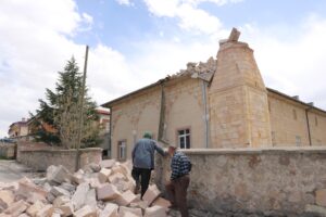 NEVŞEHİR(TREND HABER)- Nevşehir’ de etkili olan kuvvetli rüzgar ve fırtına nedeniyle Acıgöl ilçesine bağlı karapınar beldesinde 2003 yılında yapılan Fatih caminin minaresi yıkıldı.