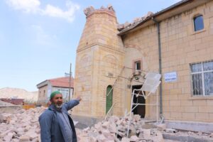 Nevşehir’in Acıgöl ilçesine bağlı Karapınar beldesindeki camiinin minaresi gece 24.00 sıralarında etkili olan şiddetli rüzgar ve fırtına nedeniyle yıkıldı.