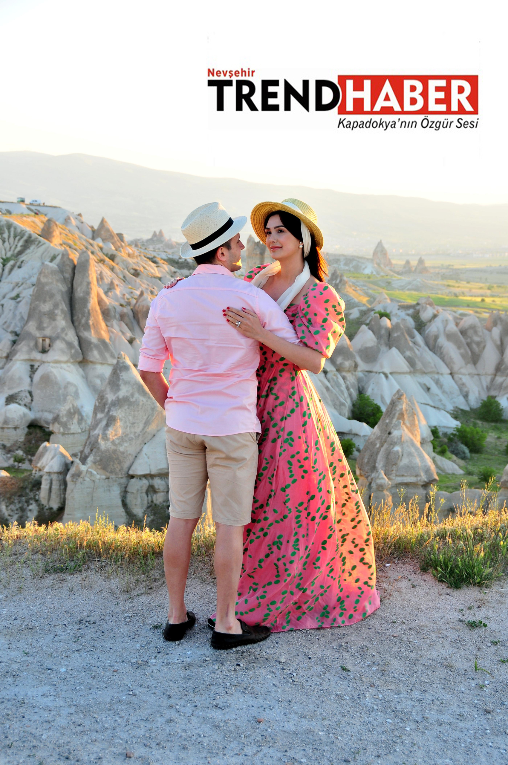 NEVŞEHİR (TREND HABER)- Dünyanın sayılı doğal güzelliklerinden biri olarak değerlendirilen peribacaları,yer altı kent yerleşimleri doğal oluşumlu vadileri ve balon turları ile Türkiye’nin dışa açılan en önemli pencerelerinden biri olan Kapadokya, evlilik teklifinde bulunan çiftlerin yanı sıra gelin-damatların fotoğraf ve video çekimini yaptırdıkları doğal çekim platosuna dönüştü.