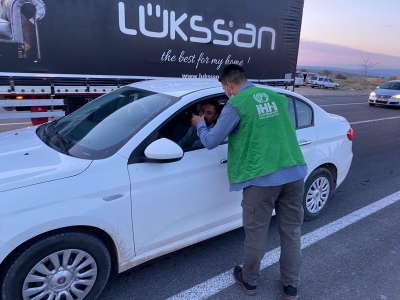 Çevre yolunun yanı sıra Atatürk Bulvarı, Lale Caddesi ve Milli İrade Caddesinde seyir halinde olan araçlar sinyalizasyon sisteminin bulunduğu noktalarda durduklarında Genç İHH’nın ikramlarıyla karşılaştı.