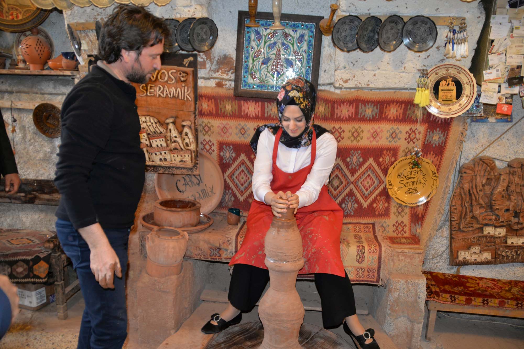 Nevşehir Hacı Bektaş Veli Üniversitesi Rektörümüz Prof. Dr. Mazhar Bağlı, “Hümayun sohbetleri: Sultan Abdülhamid’siz 100 Yıl ve Çanakkale” konulu söyleşi için Üniversitemize gelen Osmanlı padişahlarından Sultan II. Abdülhamid Han’ın 5. kuşak torunu Nilhan Osmanoğlu’nu makamında ağırladı. Avanos’ta çanak atölyesinde testi yaptı.