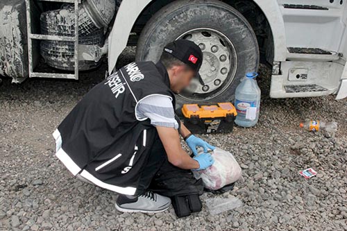 Nevşehir Emniyet müdürlüğü ekipleri Nevşehir’de uyuşturucuya geçit yok diyerek 3 kişiyi yakaladı.Narkotik ekiplerinin uzun zamandır takip ettiği 50 plakalı TIR ve uyuşturucu pazarlığı için Nevşehir’e gelen yine 50 plakalı kamyon Avanos ilçesine bağlı Kalaba beldesi civarında kaçmalarına fırsat verilmeden kıskıvrak yakalandı . E.Y., M.S., Ö.Y. ve H.K. isimli şahıslar ve araçlar üzerinde Bölge Trafik Denetleme İstasyon Amirliğinde Detektör Köpek ile yapılan detaylı aramada; Sırt çantasında (Tek için olarak tabir edilen ve 12500 kişinin aynı anda içebileceği miktarda) 2 Kg. 560 gr. bonzai ve tır içerisinde (2) parça halinde 1,15 gram ve 0,97 gram bonzai, Toplam 2 kg. 562 gr bonzai ele geçirildi, Şahıslar Uyuşturucu Madde İmalat Ve Ticareti Yapmak suçundan işlem yapılarak sevk edildikleri mahkeme tarafından (3) kişi tutuklanarak Nevşehir E Tipi Kapalı Ceza evine sevk edildi, (1) kişi Adli Kontrol Şartı ile serbest bırakıldı. Nevşehir Emniyet Müdürlüğü Ekipleri Uyuşturucu Tacirlerine Göz Açtırmamakta Kararlı şekilde çalışmalarına devam ediyor.