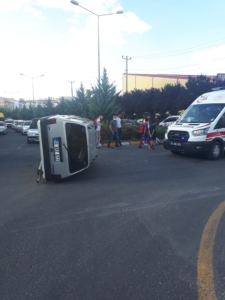 NEVŞEHİR(TREND HABER)- Nevşehir’de TUİK binası santral sokakta meydana gelen kazada kavşakta meydana gelen otomobil yan yattı.