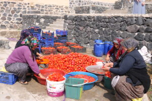 Tatlarin Girişimci Kadınlar Kooperatifi üyesi Zeynep Yılmaz’da, Tatlarin Belediylesinin kendilerinin hizmetine sunduğu 10 dekarlık bahçede yetiştirdikleri domates,biber ve salatalıkları salça ve turşu yapımında kullandıklarını belirterek, “ Burada tüketime sunduğumuz tüm ürünlerimizin tamamı doğaldır. Bahçeden topladığımız domateslerin çürüğünü ve çöplerini burada yıkayıp temizliyoruz .Sonra torbalara doldurup güneşte bir süre beklettikten sonra makinada çektiriyoruz. Sonra çektirilen domatesleri güneşte bir süre daha beklettikten sonra salça tüketime hazır hale getiriliyor.En büyük amacımız ve hedefimiz kadınların çalışma hayatındaki gücünü göstermek  ve kadınların aile bütçelerine yaptığı katkıyı ortaya koymaktır.” diye konuştu.