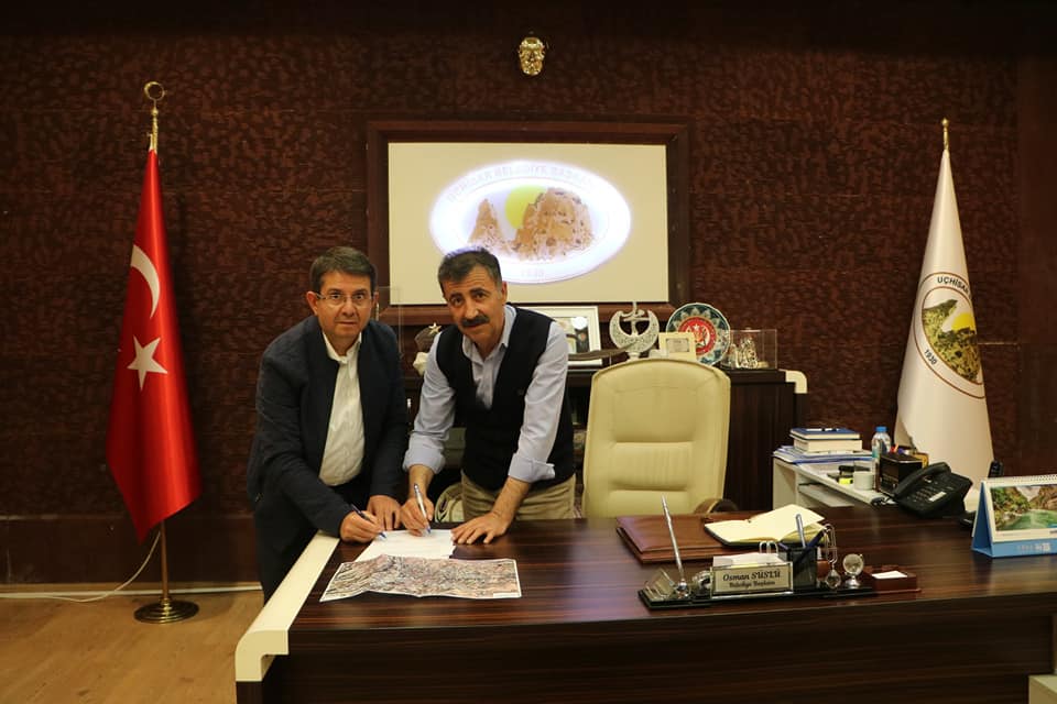 NEVŞEHİR (TREND HABER) -Uçhisar’ın doğalgaza kavuşması için Uçhisar Belediye Başkanımız Osman Süslü ve Enerya Kapadokya Gaz Dağıtım Aş İşletme Müdürü Özenç Gezgin arasında imzalanan protokole göre önümüzdeki aylardan itibaren çalışmalar başlayacak.