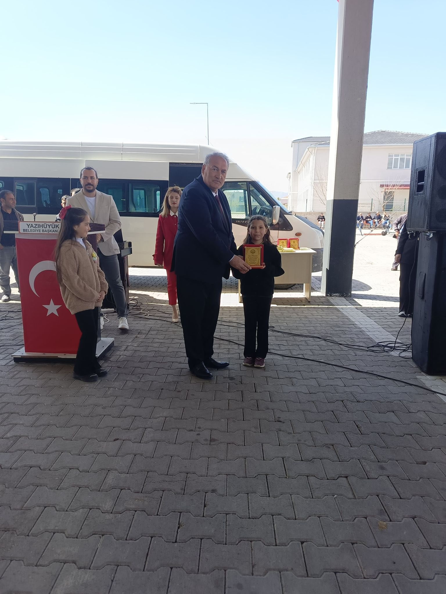 Yazıhüyük kapalı pazaryerinde gerçekleştirilen kutlamalarda Belediyle Başkanı Birol Demirdelen, düzenlenen yarışmalarda dereceye giren öğrencilere plaket ve hediye takdiminde bulundu.